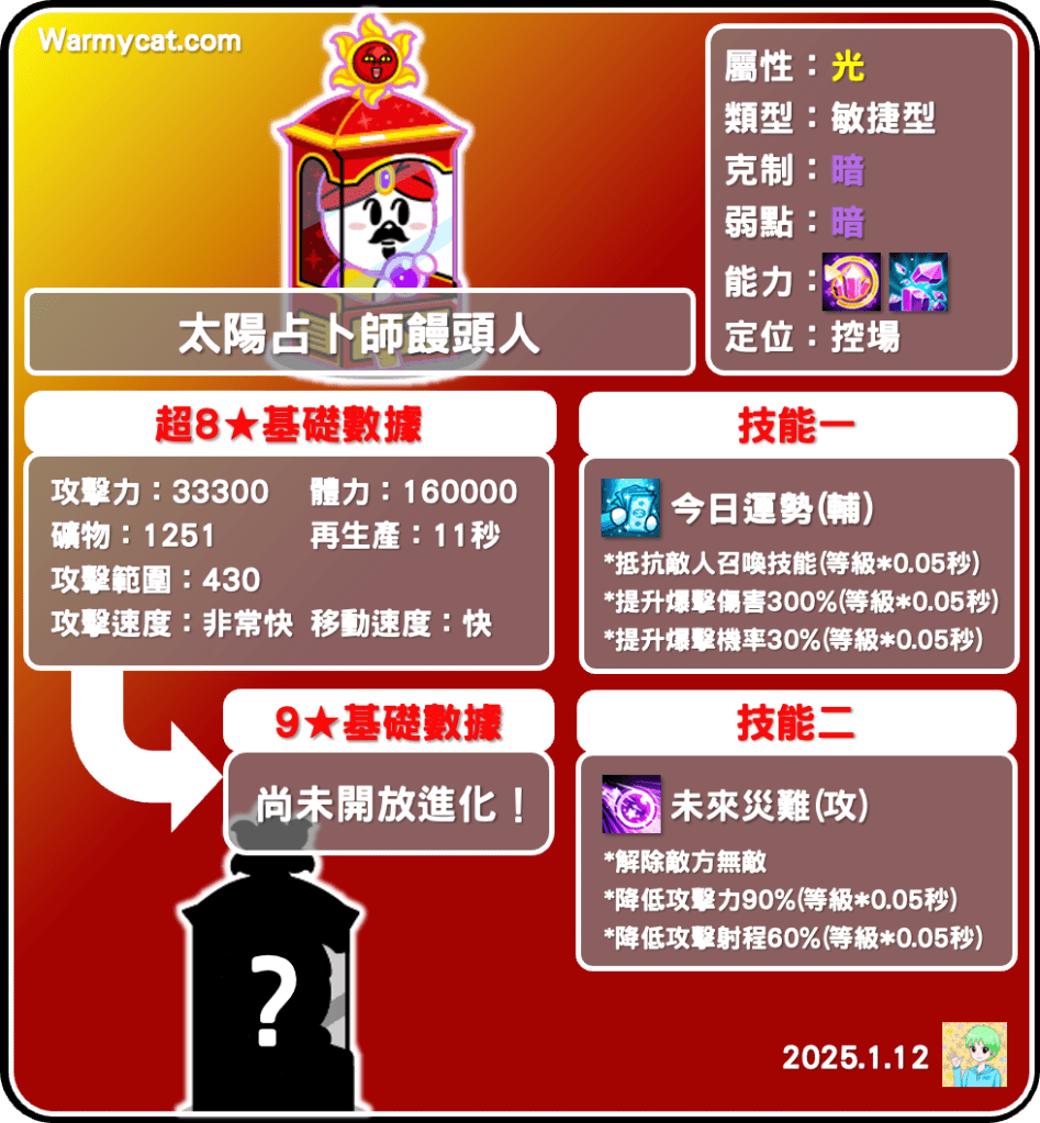 目前占卜師饅頭人還沒有九星進化,若之後開放會再更新~