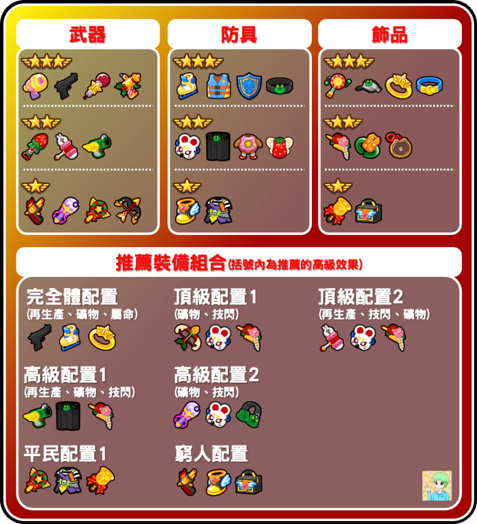 備註:礙於版面,無法將所有合適的裝備列出,僅列出部分裝備