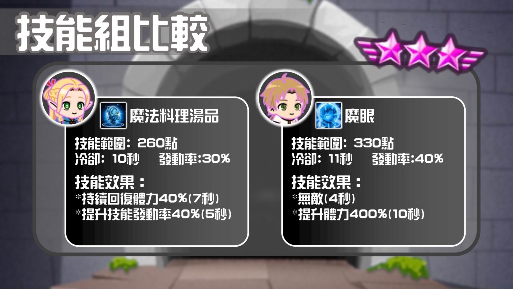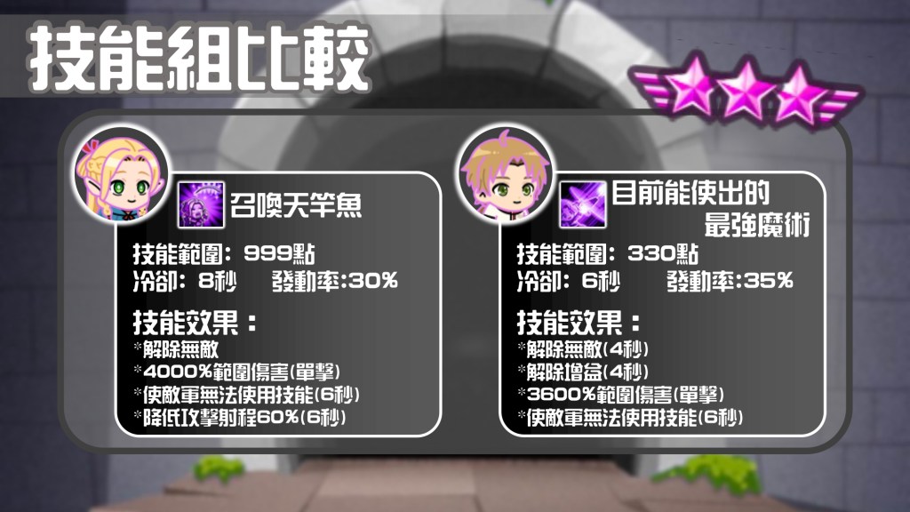 下圖是瑪露希爾與魯迪烏斯的技能組比較,詳細分析可以參考數據分析的影片: