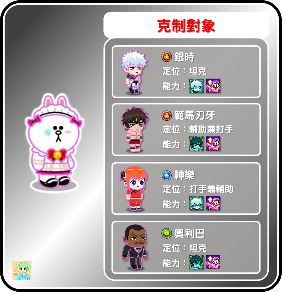絕大多數敏捷型陸軍在現在的環境一直都蠻弱勢的,傷害不足的情況下即使有屬性優勢,也很難造成太大的傷害,因此今天的克制對象主要都是持有「增加礦物成本」的角色,畢竟「抵抗增礦」是兔兔其中之一的特色,算是勉強在增礦環境中可以存活的理由了吧。